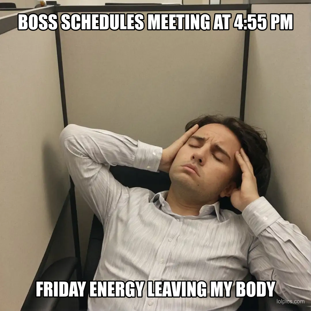 BOSS SCHEDULES MEETING AT 4:55 PM FRIDAY ENERGY LEAVING MY BODY | LOLPics | LOLPics